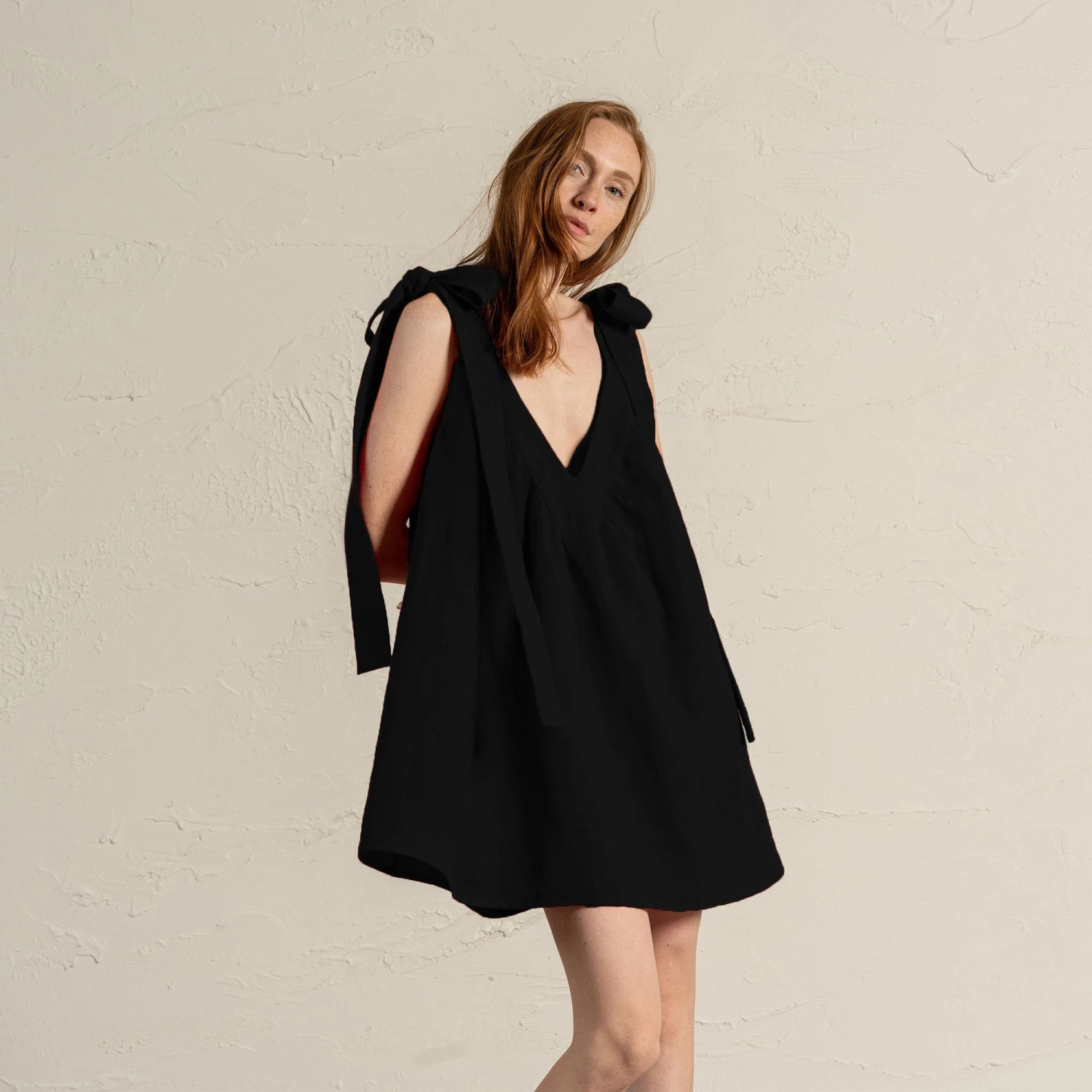 Linen trapeze dress is accentuated by a backless V-back, adjustable straps, and adorable ribbon detail. Specifically designed with a deep neck and adjustable straps, our summer dress offers a relaxed fit, ideal for women with smaller busts. Perfect for formal occasions, romantic date nights, and other special celebrations.