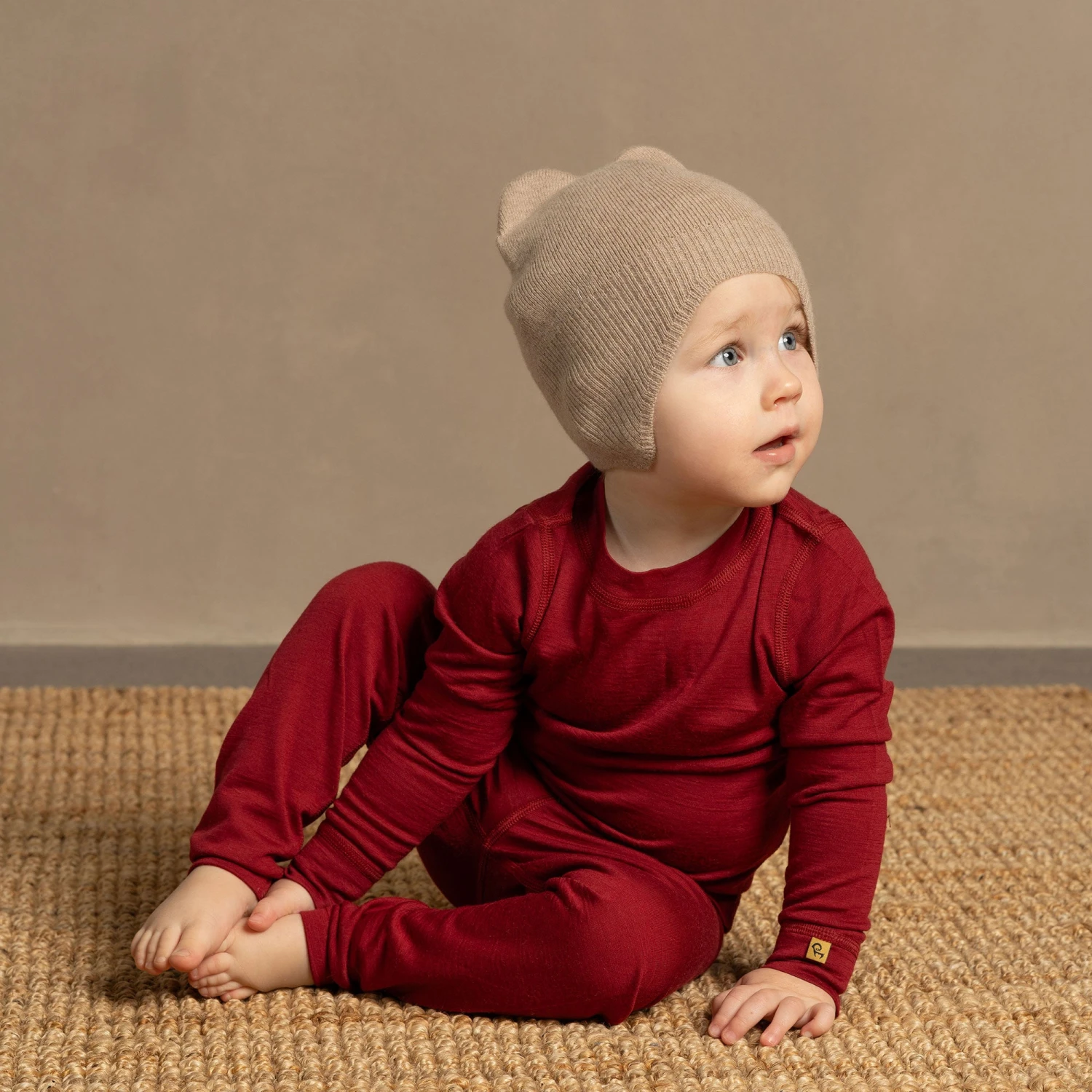 Your search for the ideal winter hat for your kids ends here – warmth and style in one package. Introducing our ear flaps beanie for kids, a winter essential to keep your toddler warm and cozy during the cold months. Kids’ winter hat is knitted from a blend of Merino wool and Cashmere, providing the perfect balance of warmth and comfort. It’s carefully crafted in a unique form that covers your child’s ears and features a delightful teddy bear design. Say goodbye to cold ears and hello to cozy warmth with our ear flaps beanie.