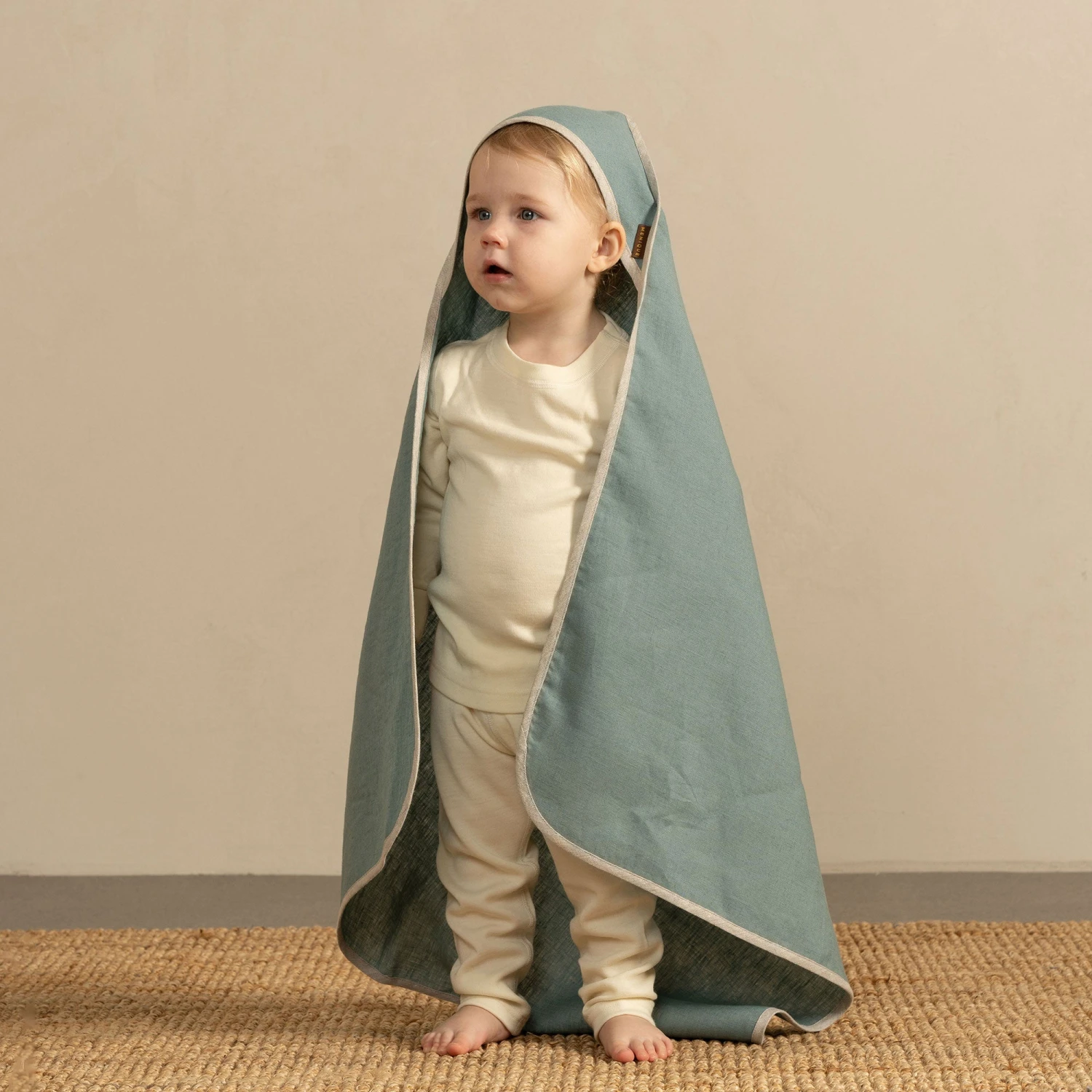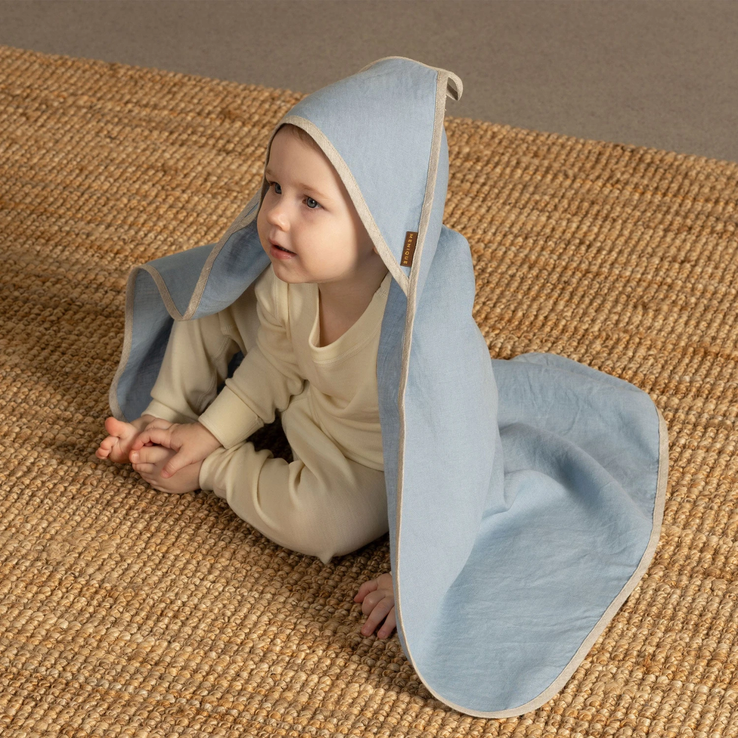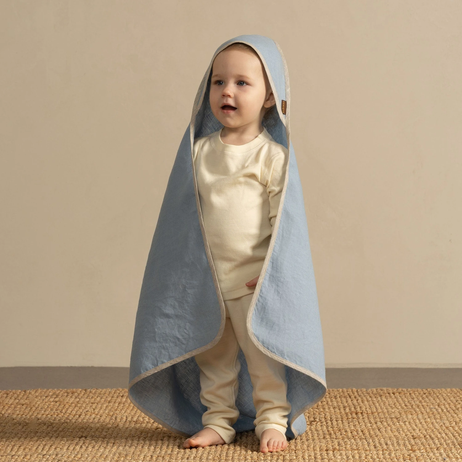 A hooded baby bath towel crafted from premium organic 100% linen fabric. Its superior absorbency quickly dries your baby after baths, gently enveloping your baby’s head and body for a snug, comforting feel. The linen toddler towel can also be used as a swaddling blanket or a cover for a changing mat.