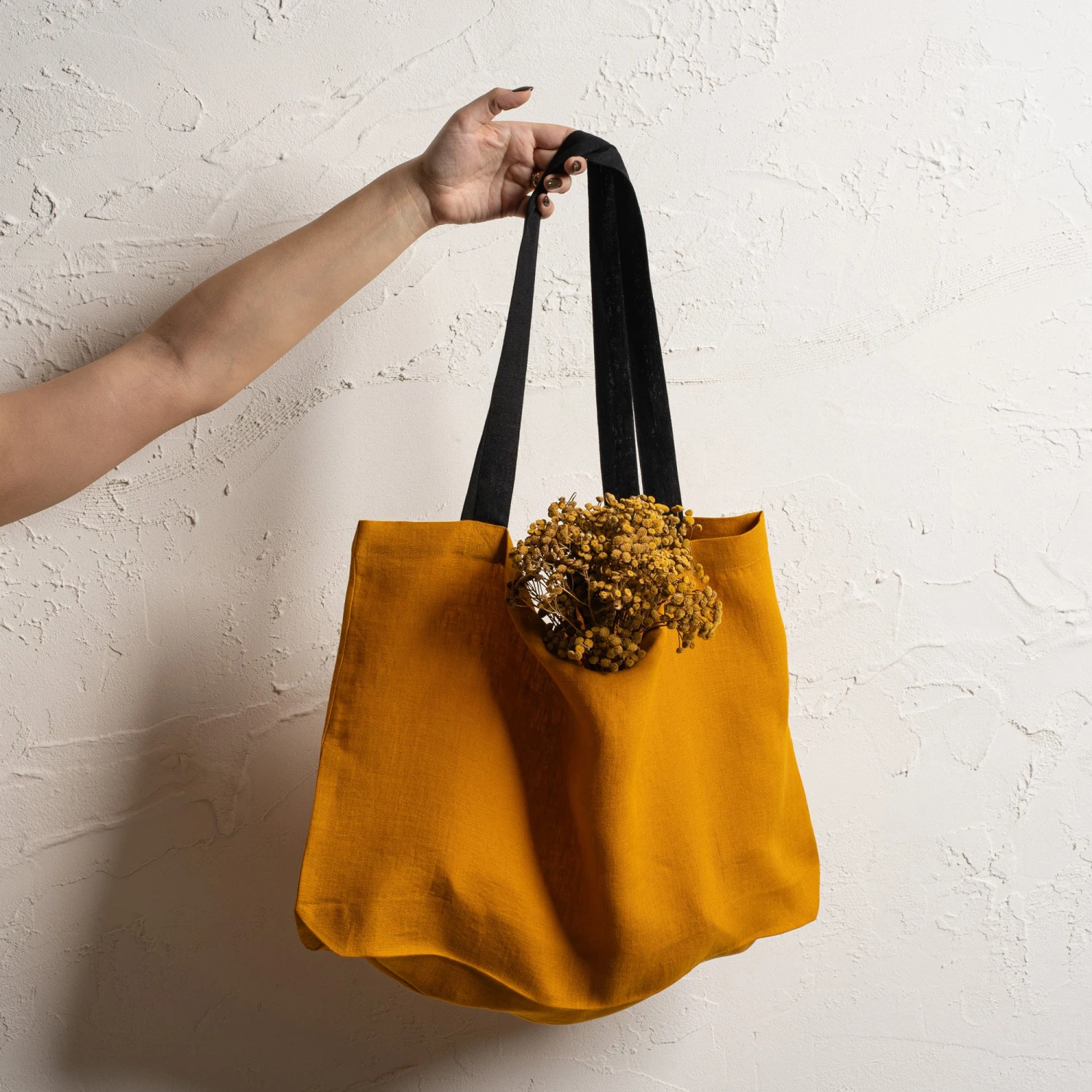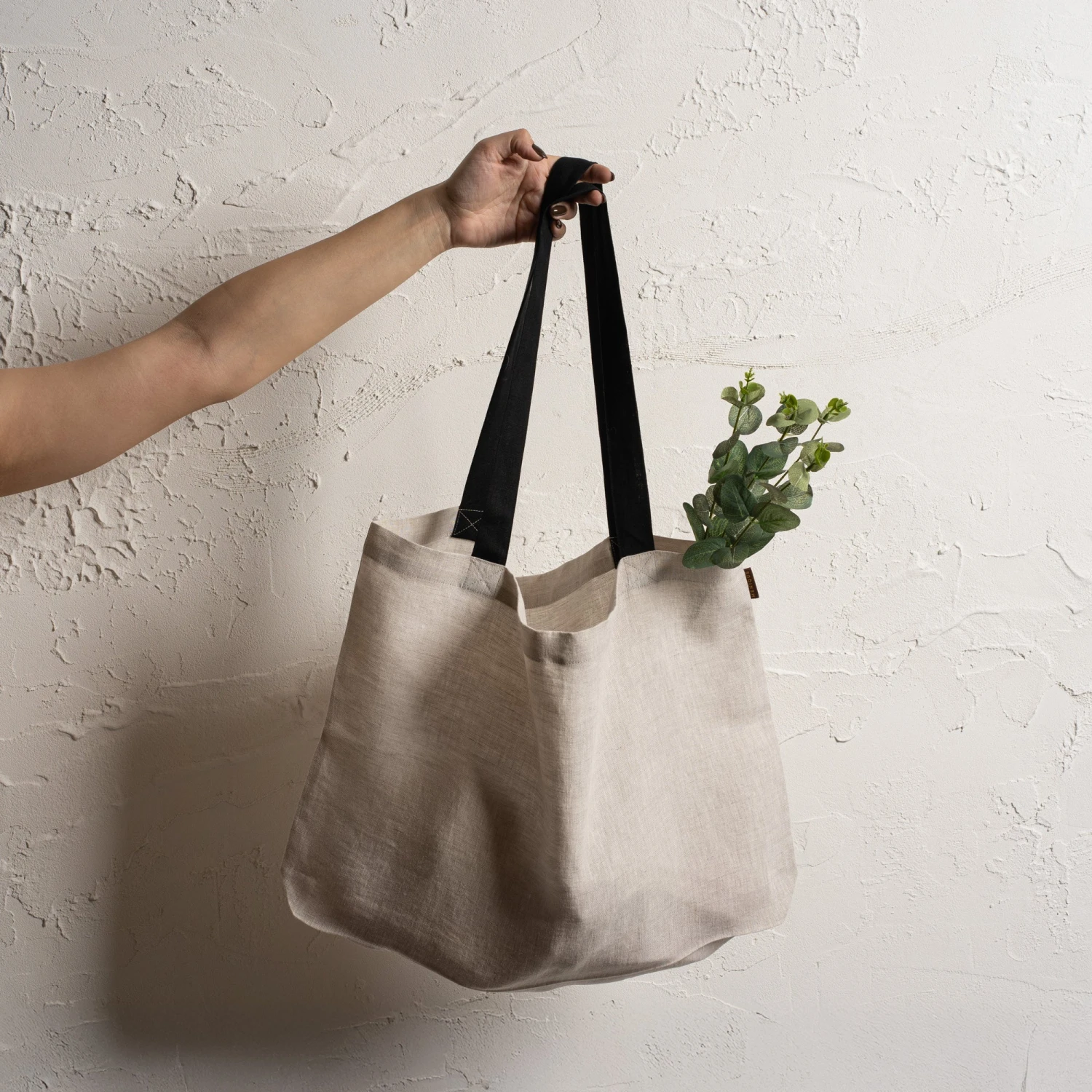 Carry your belongings in style with this versatile and sustainable large shopper bag. Crafted from 100% reusable linen material, the everyday linen tote bag offers a durable and eco-friendly alternative to single-use plastic bags. Tote bag provides ample space for carrying groceries, books, or other essentials, because of its’ oversized design of 55 cm/21.6″ width and 40 cm/15.7″ height, making it an ideal choice as a shopping bag.