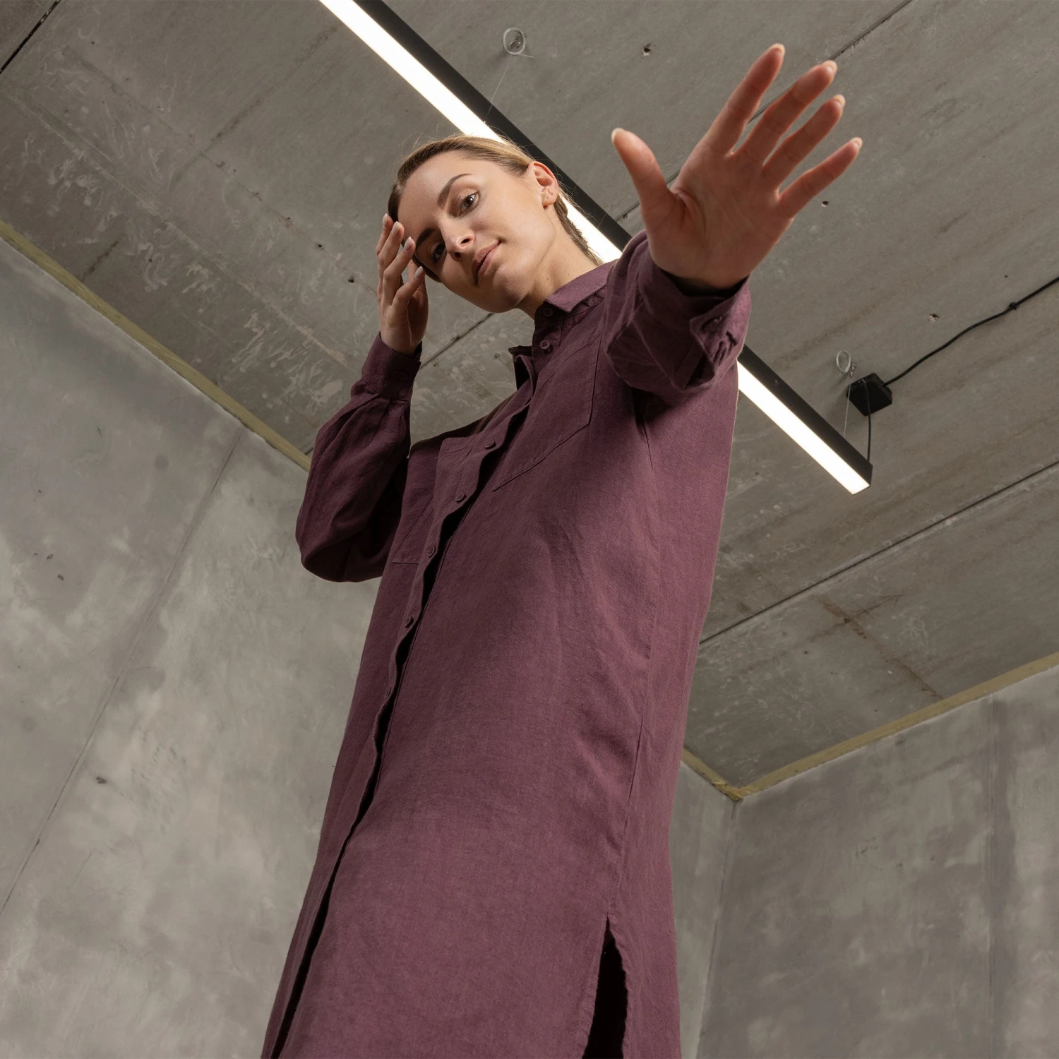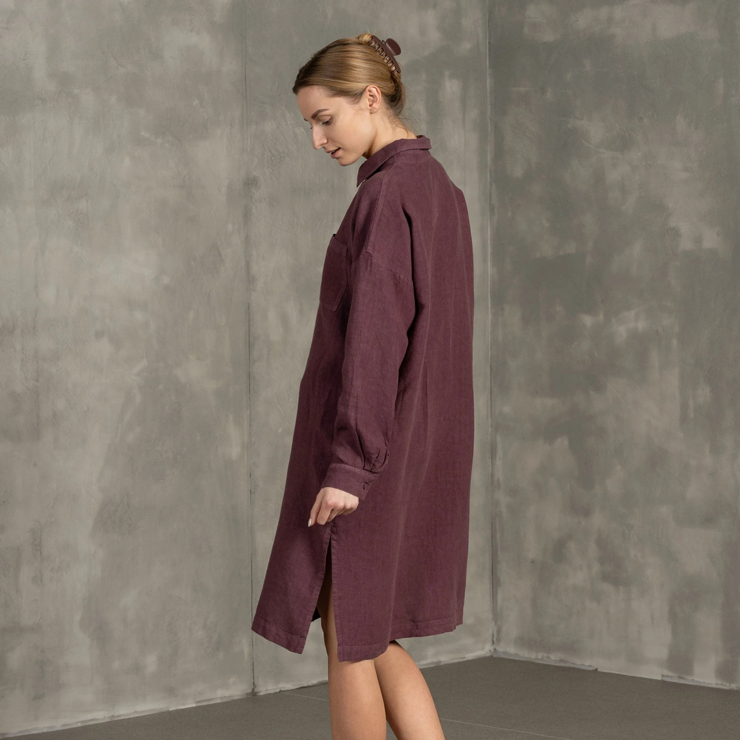 Linen Oversize Shirt Dress Margo Shadow Purple