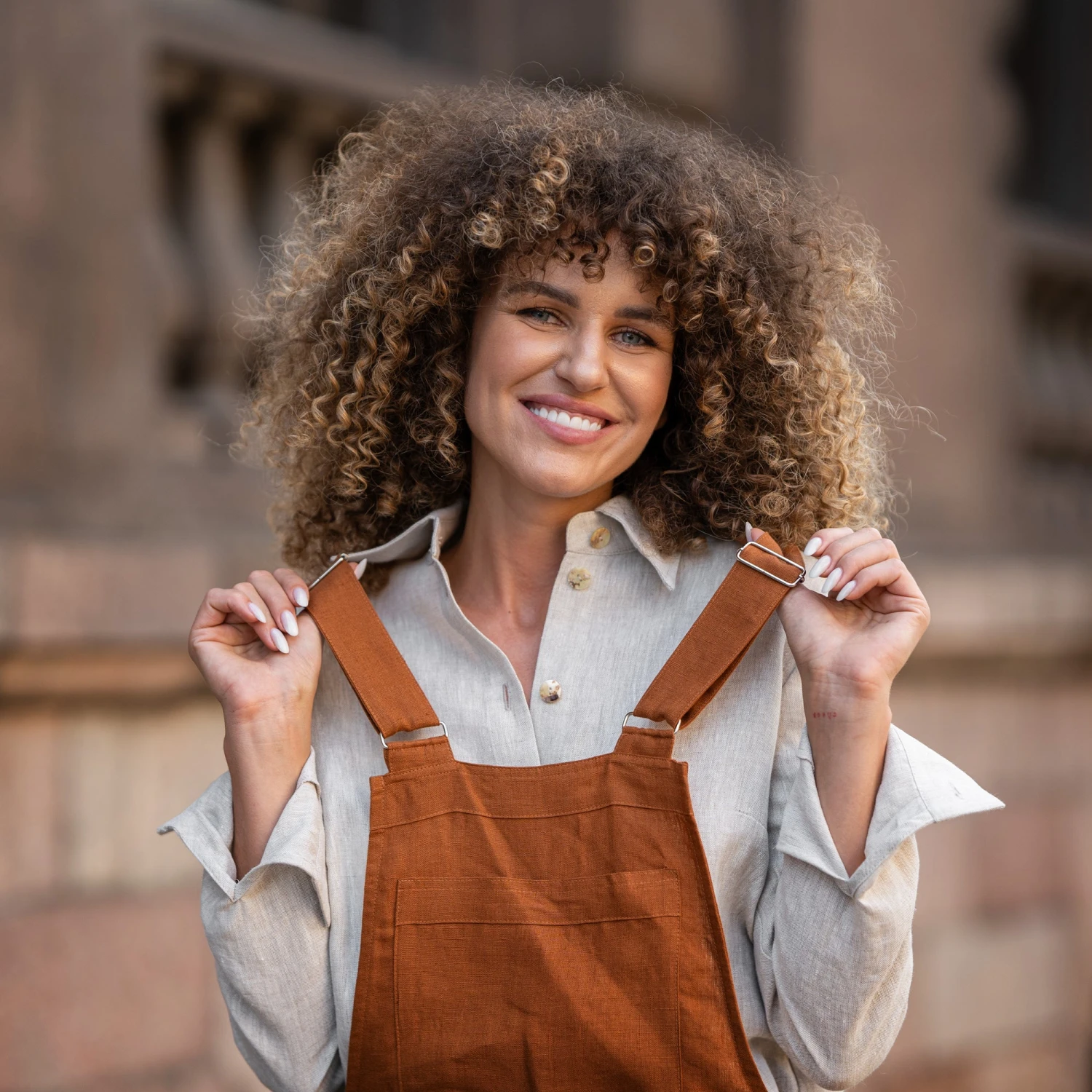 Be the first to review “Linen Pinafore Jumpsuit Nicci Almond Brown” Cancel reply