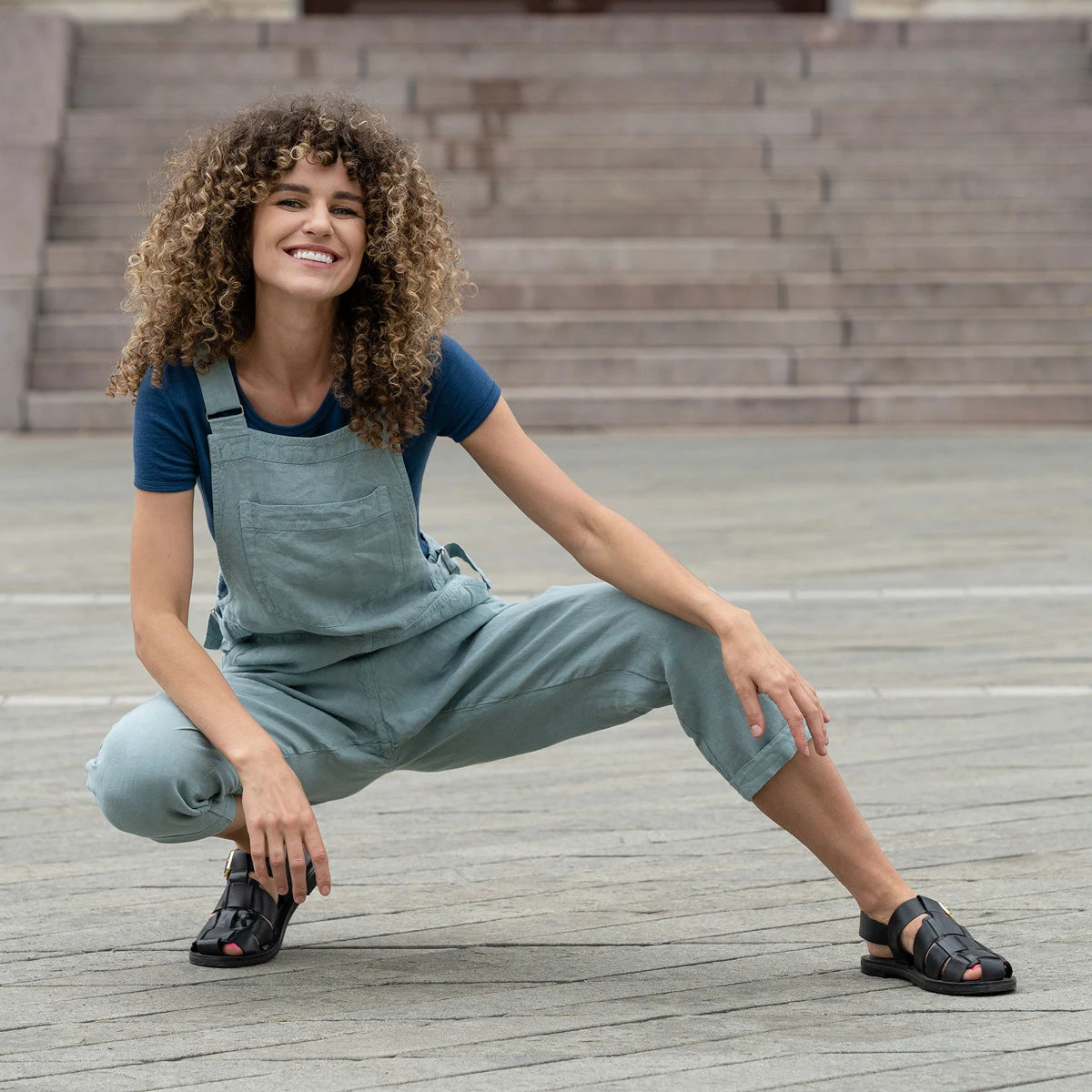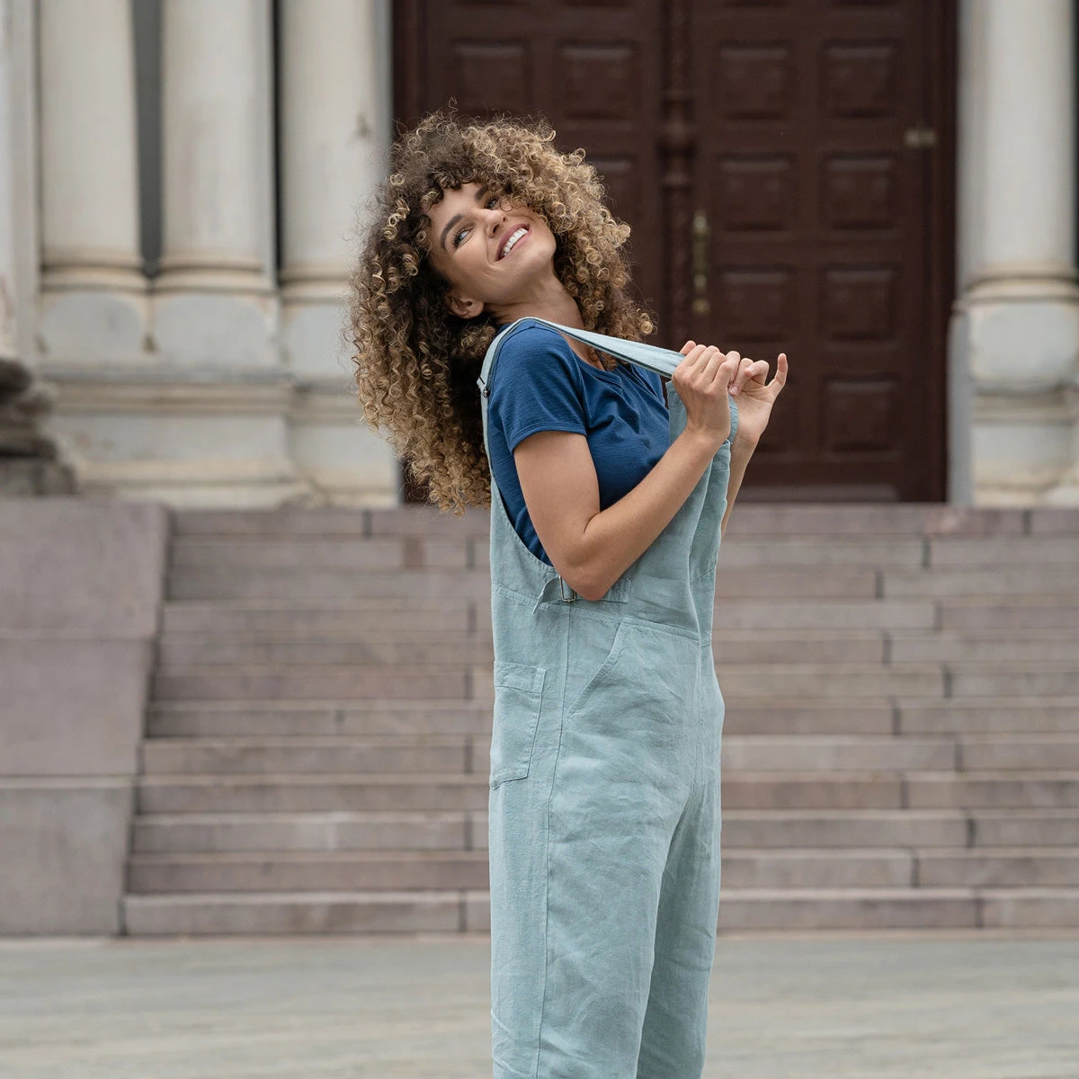 Feeling excited about rising temperatures? Tap into your inner, most optimistic child with this playful romper. Designed for maximum comfort during warm days, the organic jumpsuit is sustainably made from 100% Linen which is well-known for its moisture-wicking properties. Plus, you can wear this linen jumpsuit for any occasion – for beach trips, walks in the park, and outdoor happy hours. Without much thought, throw a Merino wool tee into the mix to channel a look that never dates. With a classic pinafore design, our sustainably made linen jumpsuit features the side straps to define your waistline and the pouch pocket on the chest, making it amazingly cheerful.