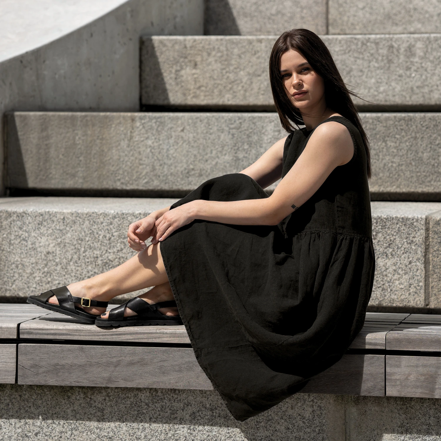 Linen Smock Dress Maya Pure Black