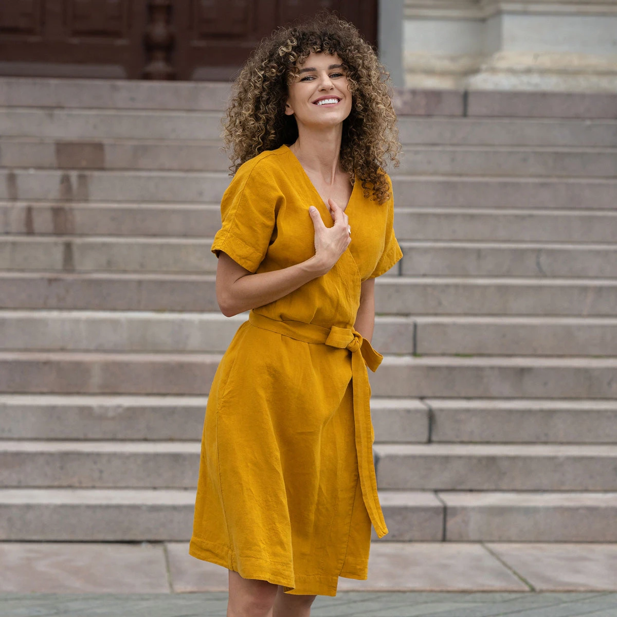 Be the first to review “Linen Wrap Dress Eliana Spicy Yellow” Cancel reply
