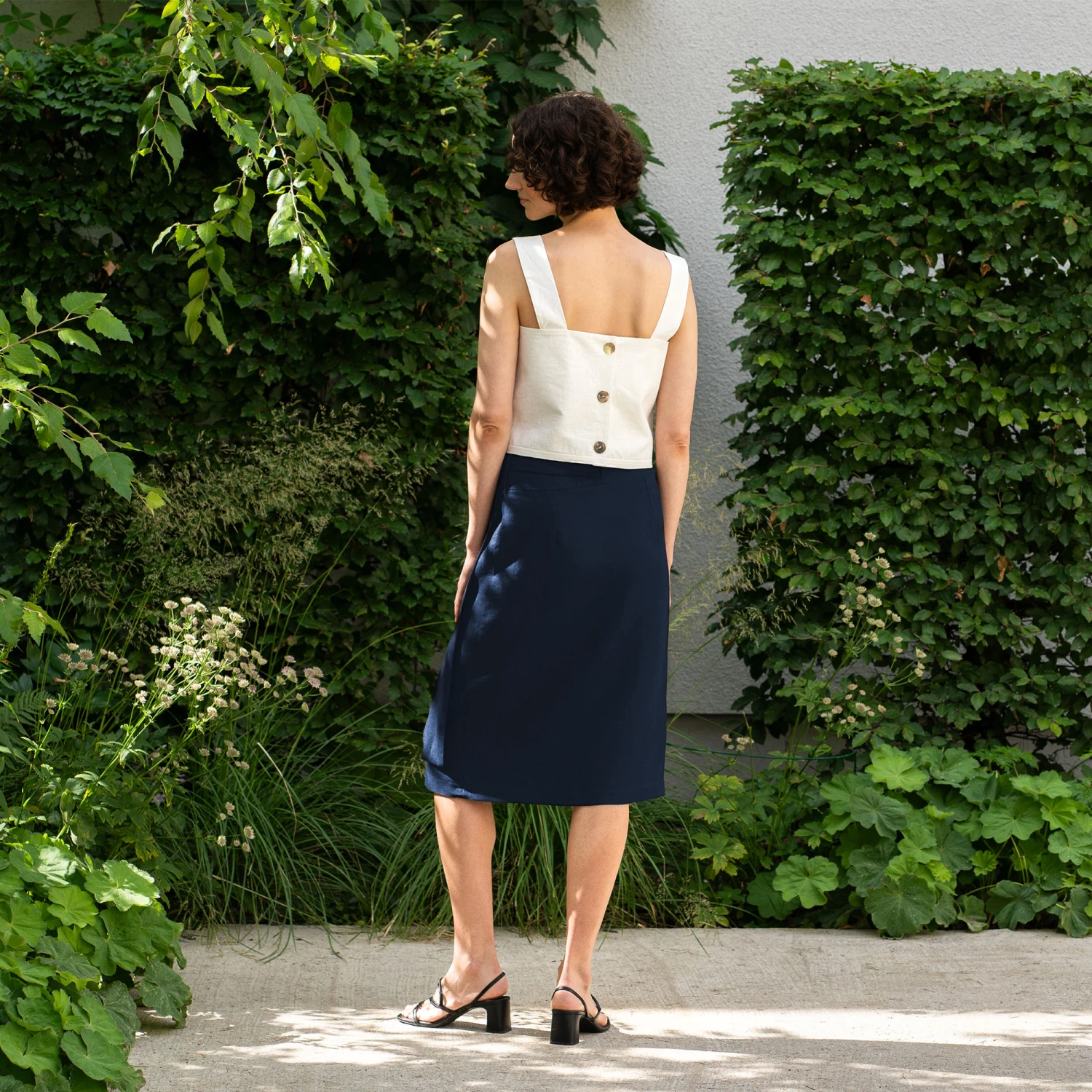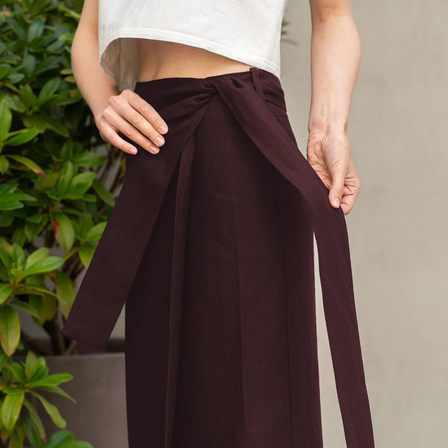 Embrace effortless elegance and comfort style with our 100% Linen wrap skirt Everly. Made from natural material, our eco-friendly linen skirt offers a timeless aesthetic with a touch of romance and elegance. Midi length pencil skirt features two side pockets, a beautiful fit, that elegantly defines your body curves. Ideal for the office, formal events, official dinners, or any occasion where a polished appearance is desired.
