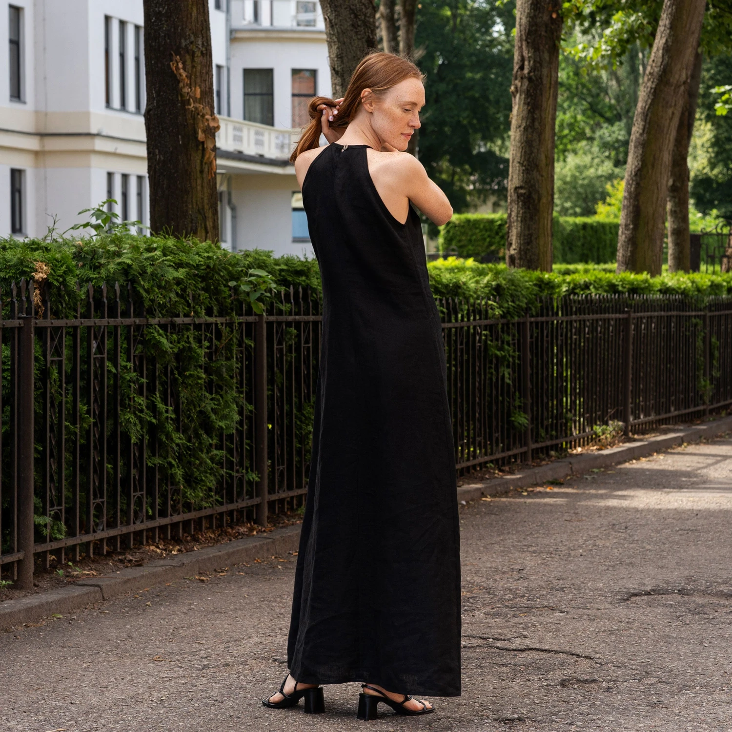 Linen maxi summer dress beautifully defines your neck and shoulders, an overlapping skirt that is sewn together for a comfortable fit. The elegant halter neck dress offers a flattering and figure-shaping fit. Organic summer dress for women is ideal for a wedding as bridesmaid dress, baby showers, evening events, and other formal occasions.