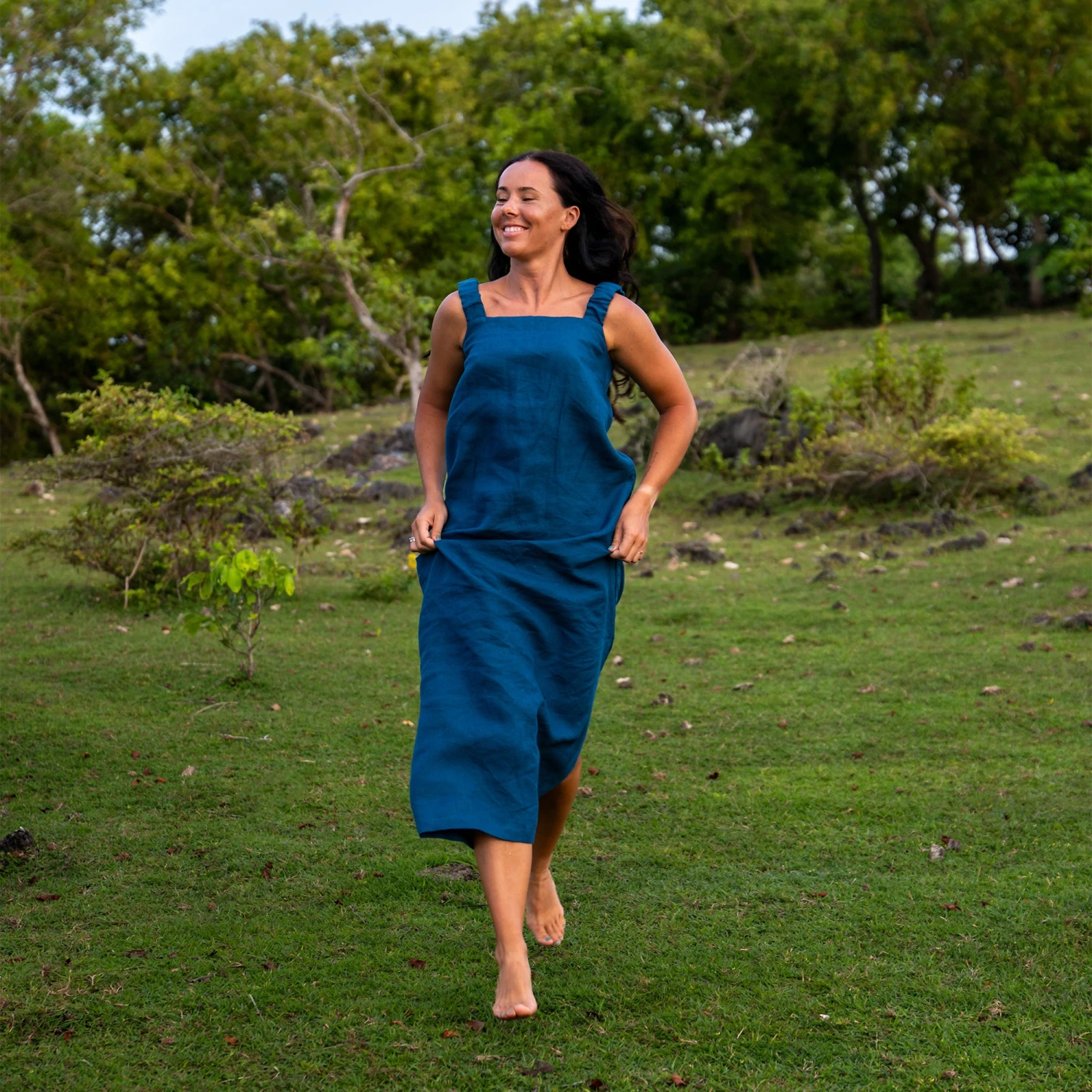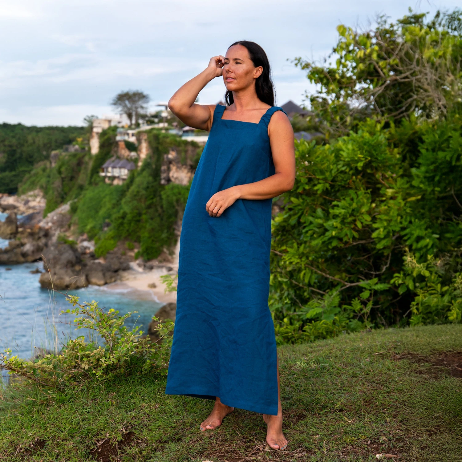 Discover your perfect summer escape with our 100% linen maxi sleeveless dress. Made from breathable, high-quality linen material, this summer dress allows your skin to breathe comfortably even on the hottest summer days, while creating a luxurious, stylish look. This elegant maxi dress with a square neckline and a straight pinafore silhouette is ideal for any occasion or a cozy everyday outfit – a must-have addition to your vacation wardrobe.