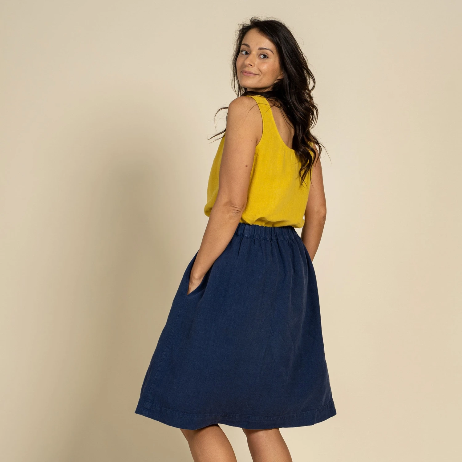 A-line skirt Sophia is made from 100% organic and natural linen. Women’s skirt features a wide waistband, 2 hidden pockets, and is suitable for warm-weather activities. Pair linen skirt with our Kim blouse and wear it with trainers or strappy heeled sandals.