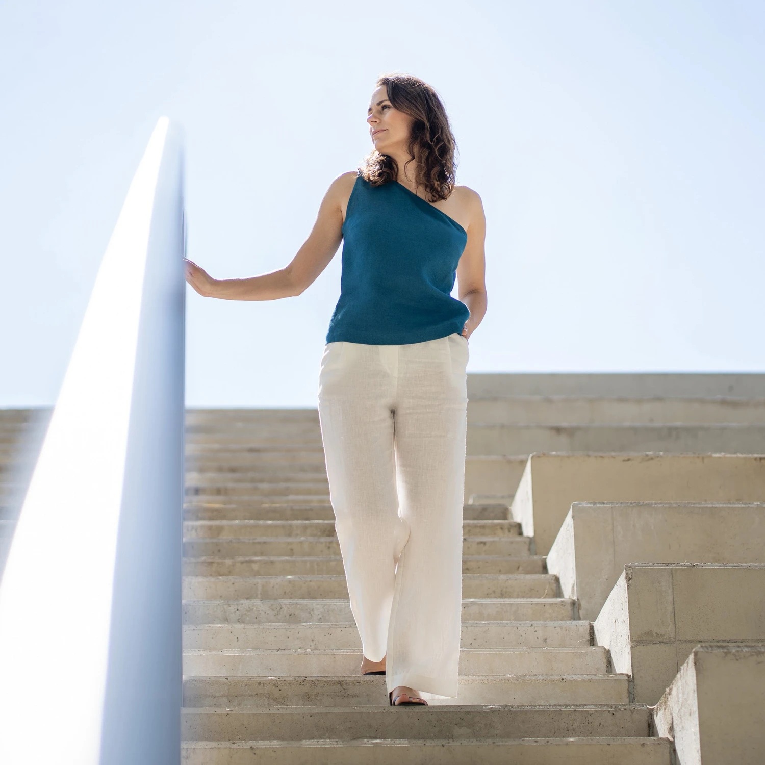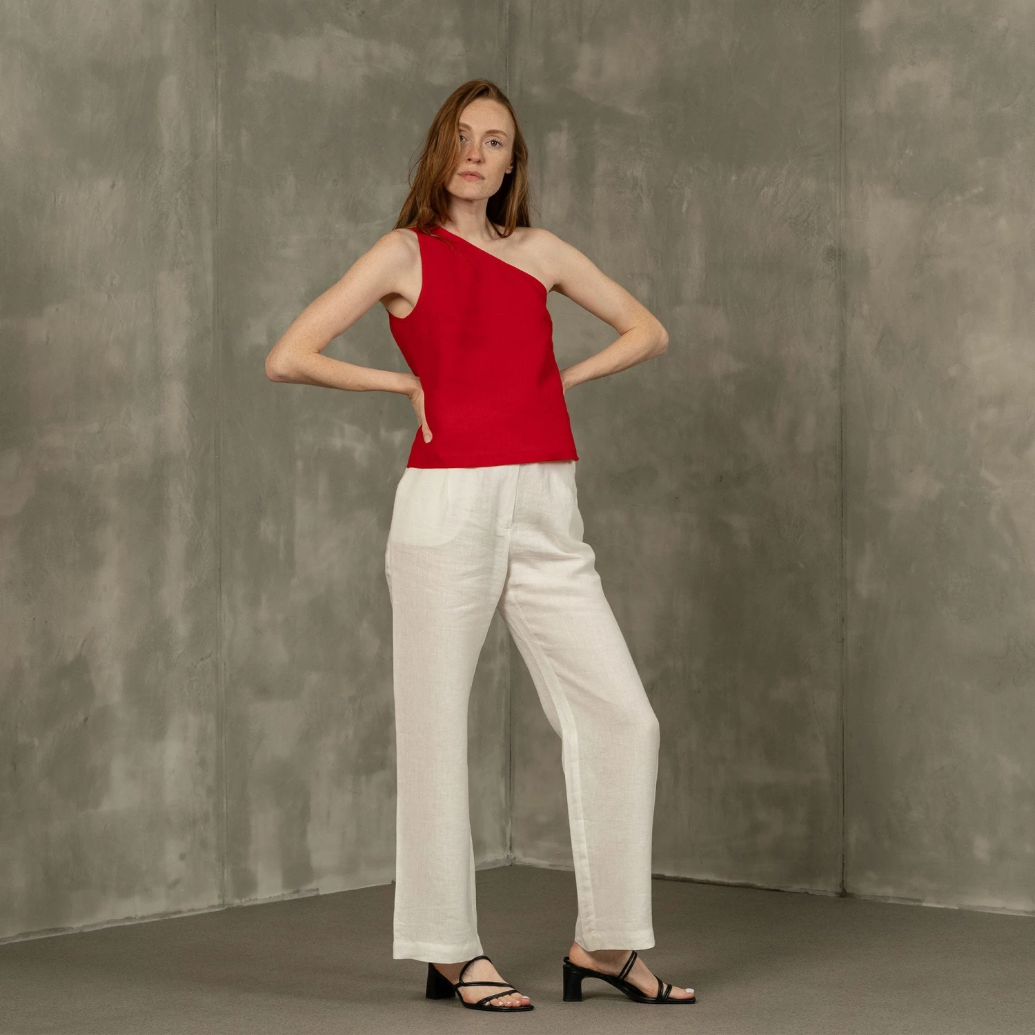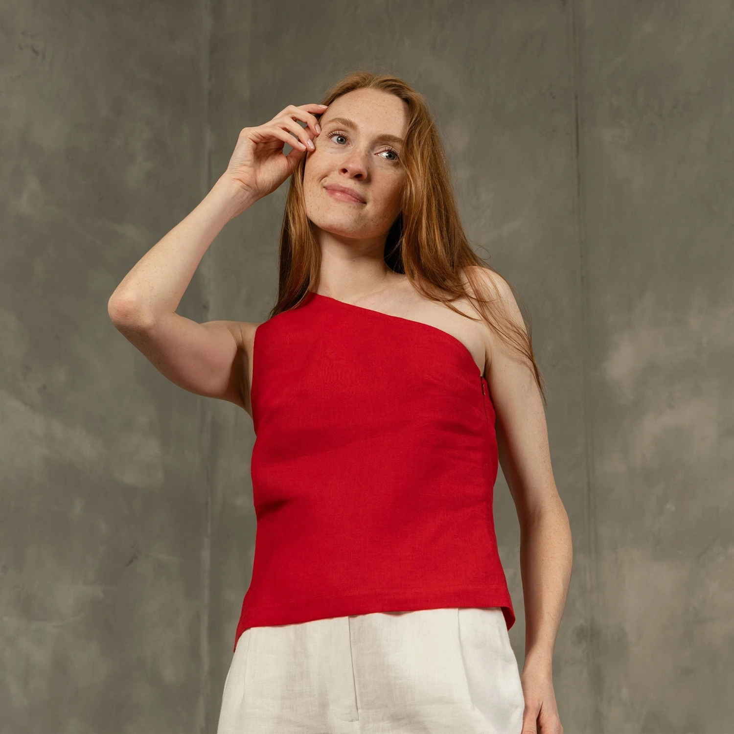Elegant and glamorous, our linen blouse features a feminine one-shoulder strap, beautifully accentuating your shoulder line. With its slim fit, it’s perfect for date nights, dinners, and other formal events.