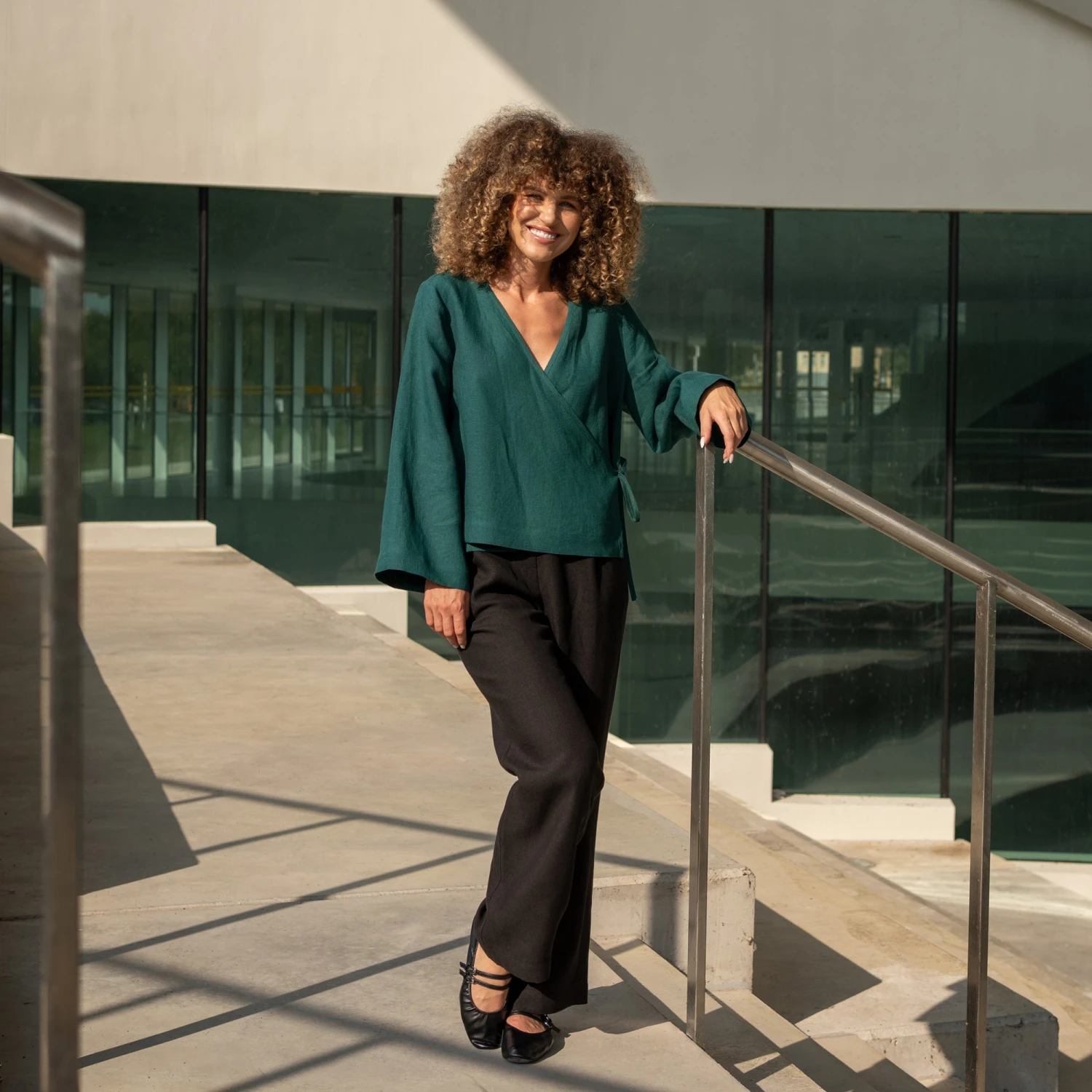 SKU: BWVUA 9047602102528 Categories: Tops, Women Tags: 100% Linen, Adjustable detail, All-year round, Apple, Blouse, Bra-friendly, Casual Tops, Casual Wear, Cloudy Blue, Dark green, Dark green main, Dinner & Date, Exploration Wear, Female, Formal Occasion, Highly breathable, Hourglass, Inverted Triangle, Linen, Linen Clothing, Linen Long Sleeve Tops, Linen revival, Linen Top, Linen-clothes, Long sleeve, Loose, Made in Lithuania, Menique, Midi, Natural, Pure Black, Recommended, Rectangle, Show-in-collection, Solid, Spring, Thea, Tops, V Neck, Vacation Outfit, Women, Work, Wrap, Wrap Top