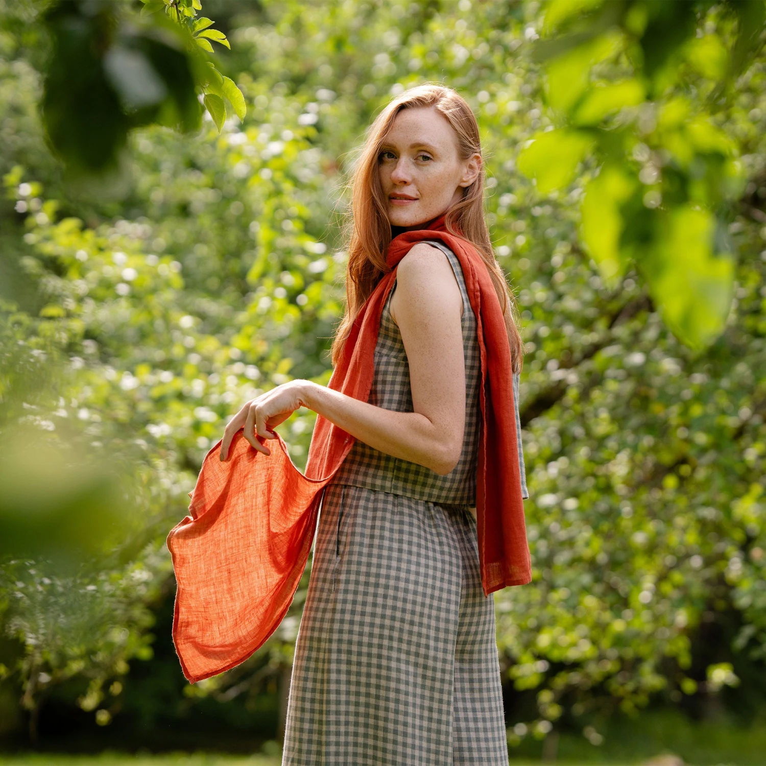Did you know that linen scarves are the perfect accessory for shielding yourself from the sun? Our women’s scarf is crafted from 100% organic, certified linen, ensuring unmatched comfort and functionality. Naturally hypoallergenic and breathable, this unisex scarf is gentle on the skin and keeps you cool even on the hottest days. Available in a variety of colors to complement your personal style.