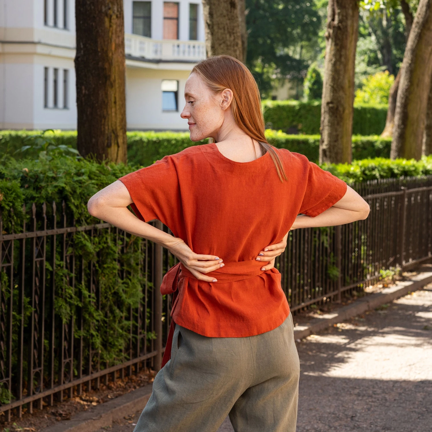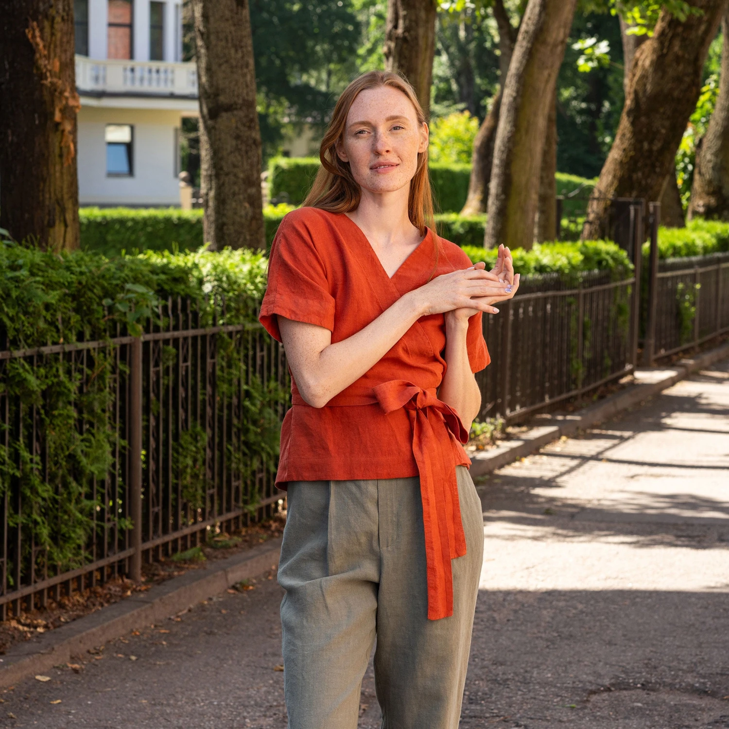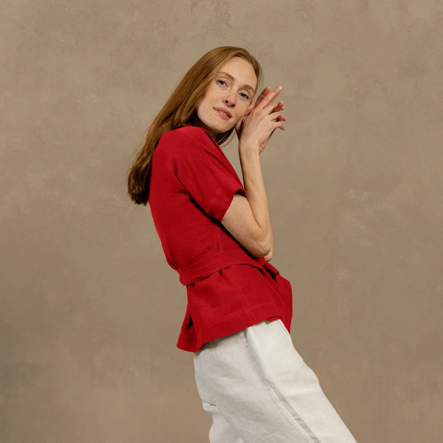 Dive into comfort and elegance with our Linen v-neck wrap blouse Lila. Made from 100% natural Linen, our garment prioritizes breathability and durability while ensuring hypoallergenic properties. Wrap design of this linen kimono top offers endless styling possibilities, making it a perfect choice for any occasion. Elevate your wardrobe with this versatile short-sleeve wrap top.