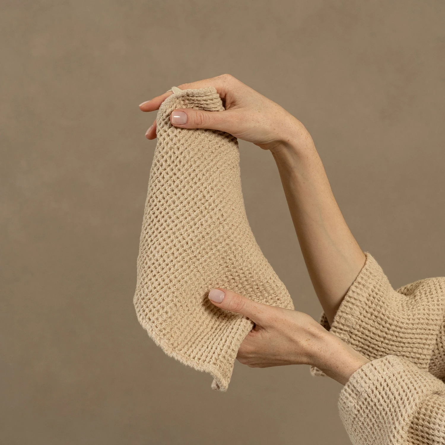 Our linen and cotton blend waffle washcloth is designed for gentle cleansing and drying of the face. The linen face towel features a waffle texture, which enhances absorbency and is extremely soft on the skin.