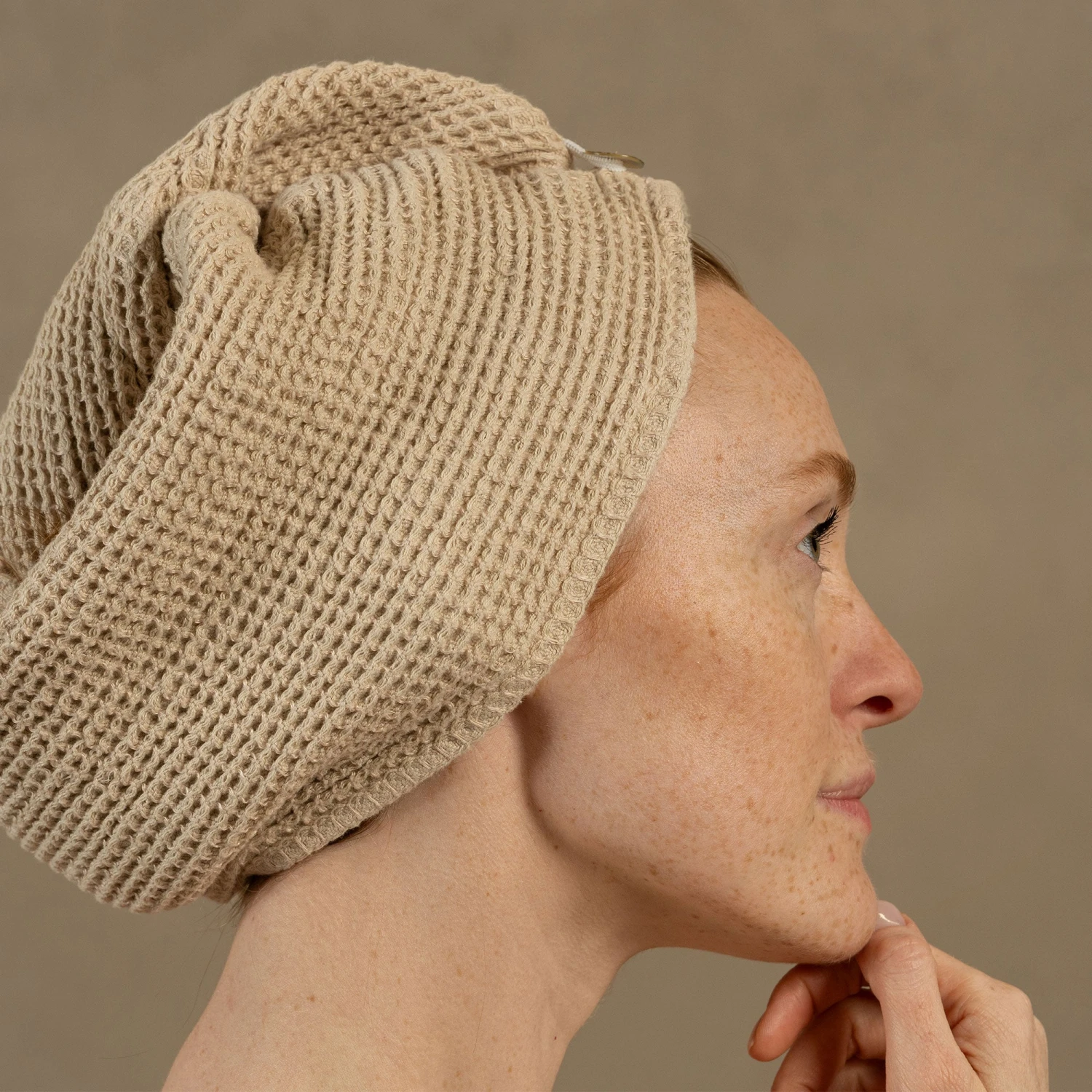 Pack includes waffle face towel and hair towel made of Linen and Cotton fabric blend. The hair towel dries your hair fast after a shower, while the washcloth is perfect for your face, giving your skin the special treatment it deserves.
